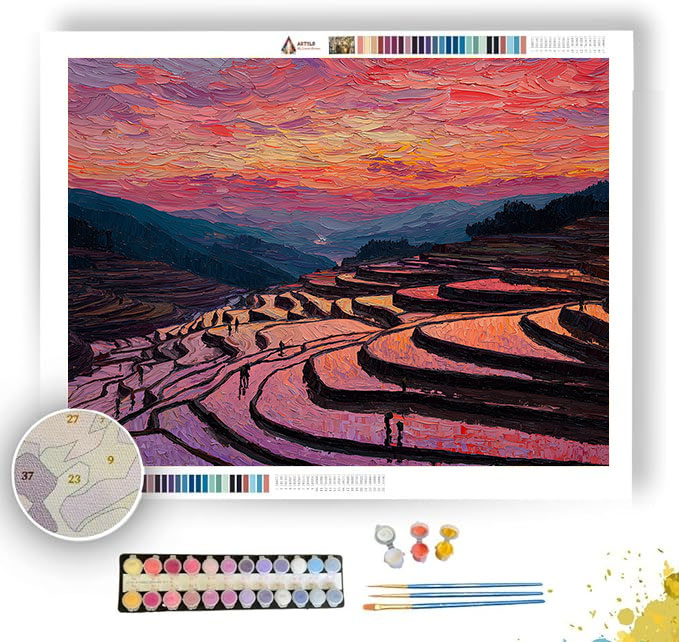 RICE FIELDS AT DUSK - Paint by Numbers Full Kit