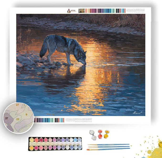 RIVER REFLECTION WOLF - Paint by Numbers Full Kit
