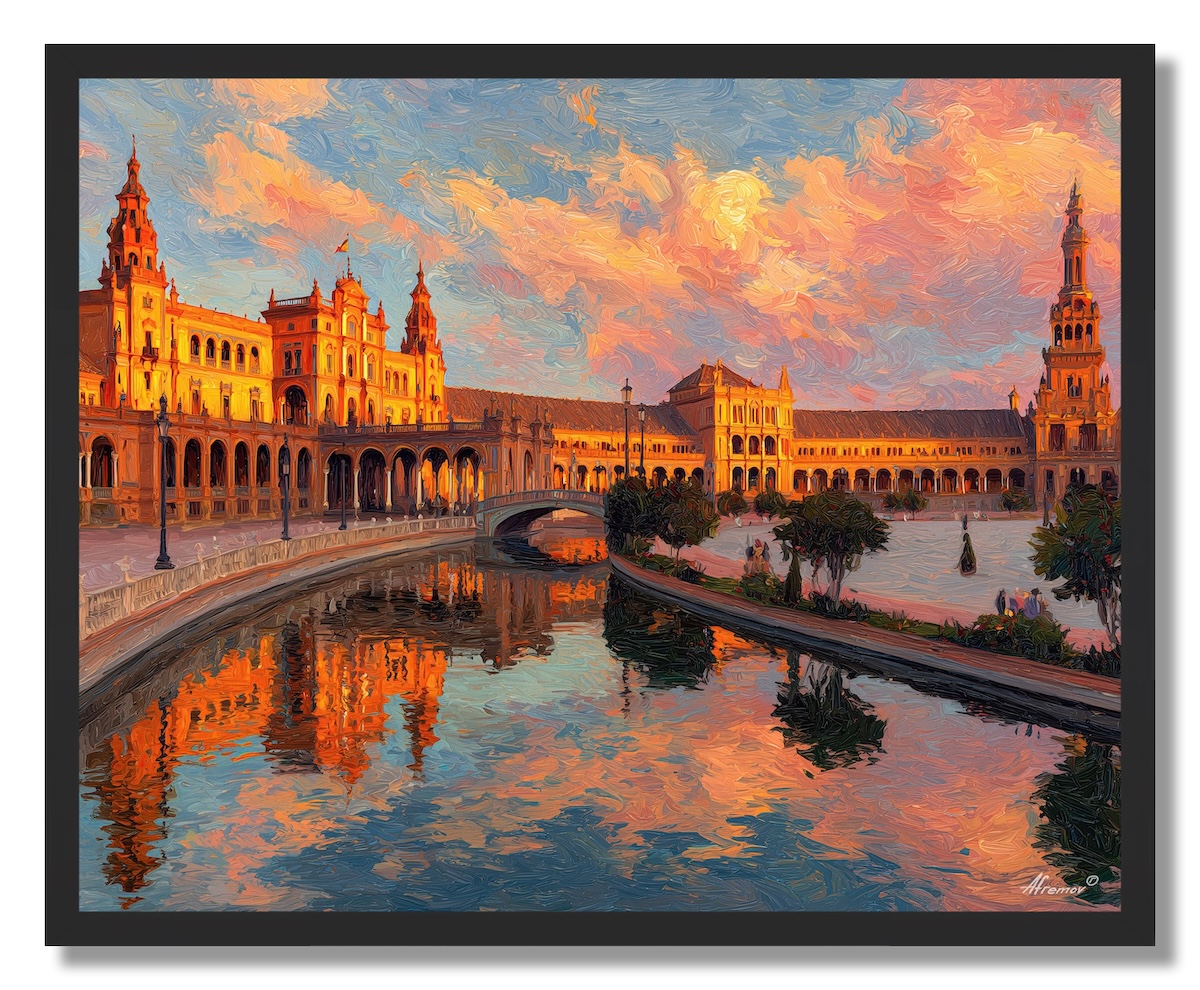 SEVILLE PLAZA DE ESPANA SUNSET - FRAMED