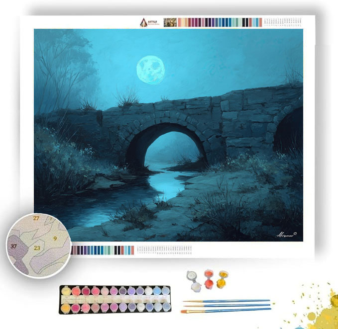 STONE BRIDGE UNDER CERULEAN MOON - Paint by Numbers Full Kit