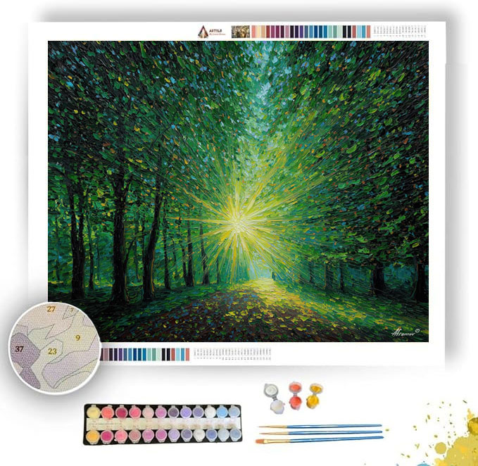 SUNBURST THROUGH THE TREES - Paint by Numbers Full Kit