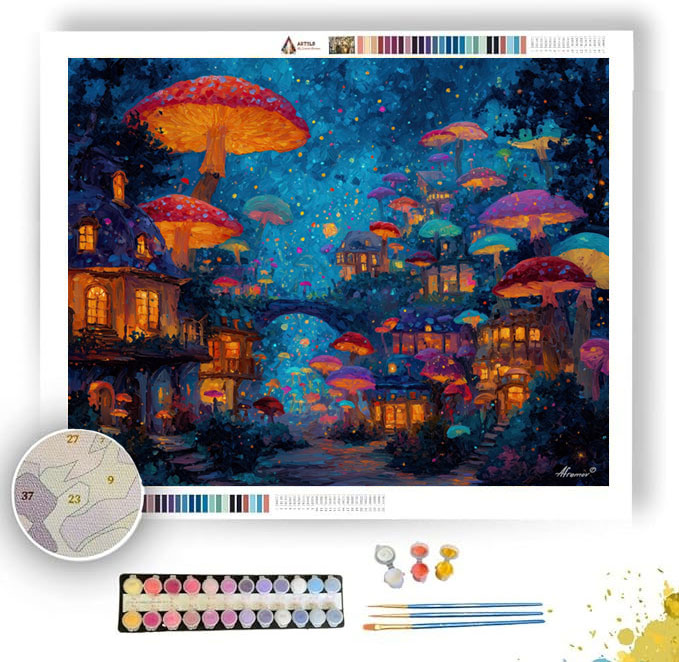 TWILIGHT MUSHROOM TOWN - Paint by Numbers Full Kit