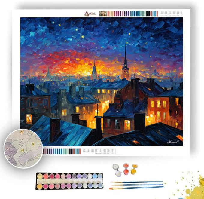 TWILIGHT ROOFTOPS - Paint by Numbers Full Kit