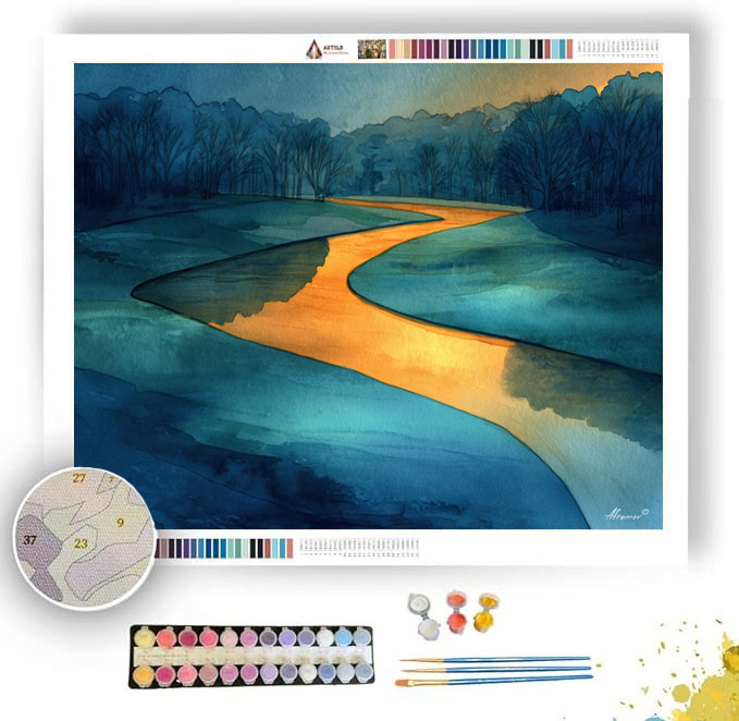 WATERCOLOR RIVERBEND GLOW - Paint by Numbers Full Kit