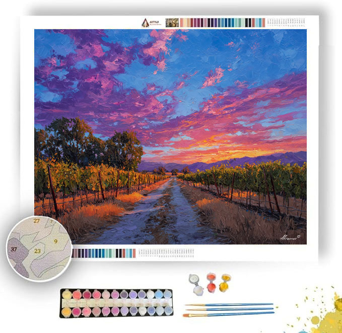 WINE ROAD SUNSET - Paint by Numbers Full Kit