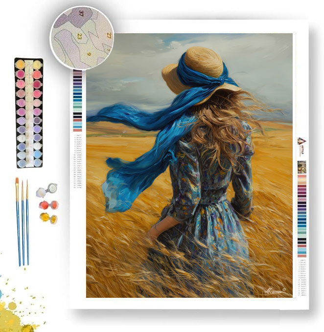 WOMAN WITH BLUE SCARF - Paint by Numbers Full Kit