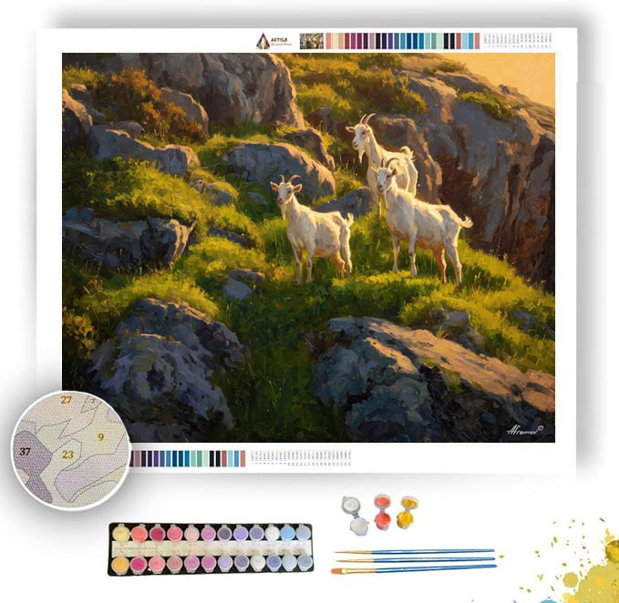 GOATS IN THE HILLS - Paint by Numbers Full Kit