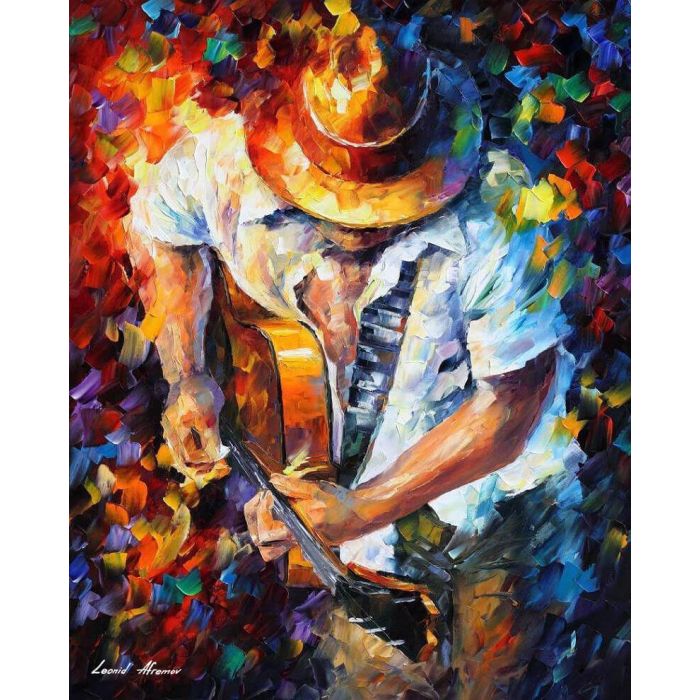 GUITAR AND BEAUTIFUL SOUL - PALETTE KNIFE Oil Painting On Canvas By Leonid Afremov