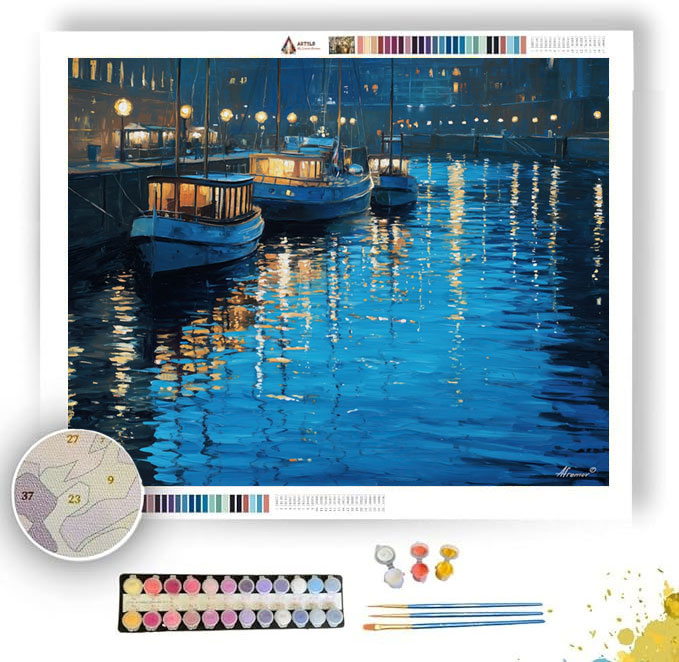 HAMBURG HARBOR NIGHT - Paint by Numbers Full Kit