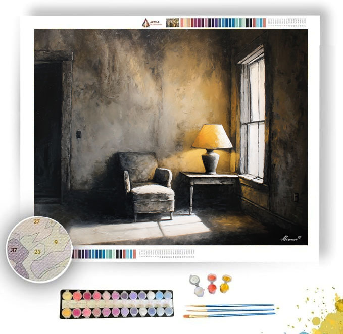 ASHEN ROOM WITH HONEY LAMP B&W - Paint by Numbers Full Kit