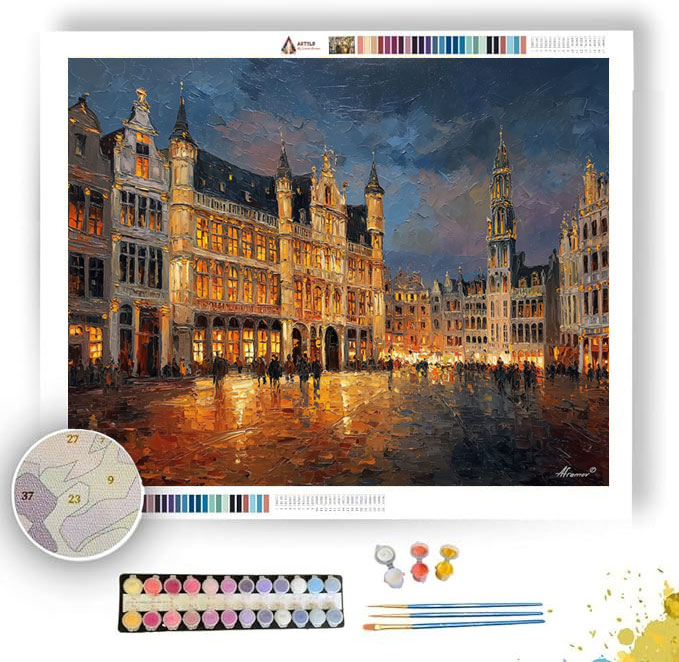 BRUSSELS GRAND PLACE GILDED HOUSES - Paint by Numbers Full Kit