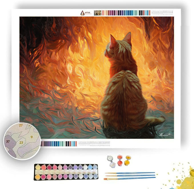 CAT BY THE FIRE - Paint by Numbers Full Kit