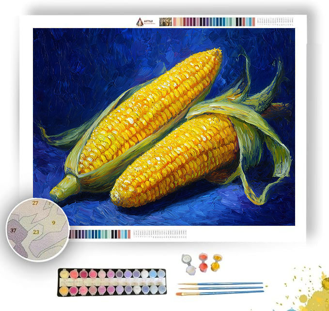 Whether pursued for personal artistic expression or given as a thoughtful gift, this kit invites individuals to bask in the radiant world of sunflowers, allowing them to infuse Afremov Gallery artist's creation with vivid colors and meticulous attention to detail, bringing the CORN ON THE COB to life in their own unique interpretation.