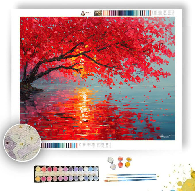 CRIMSON PETALS ON THE LAKE - Paint by Numbers Full Kit