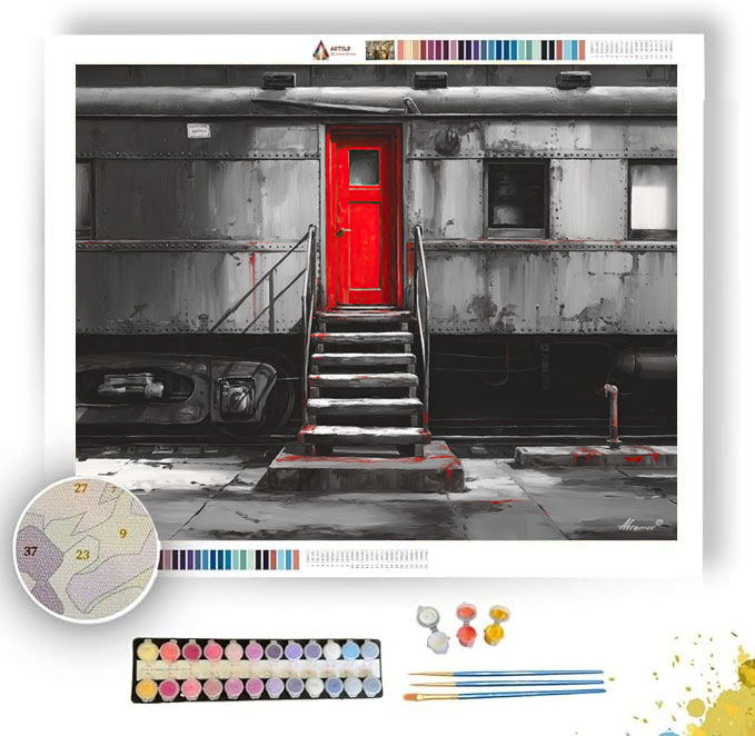 CRIMSON TRAIN THRESHOLD B&W - Paint by Numbers Full Kit