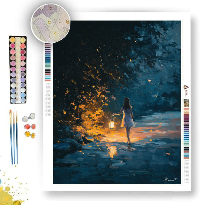GIRL WITH LANTERN ROAD - Paint by Numbers Full Kit