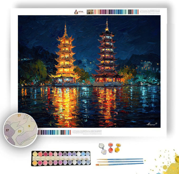 GUILIN TWIN PAGODAS NIGHT GLOW - Paint by Numbers Full Kit