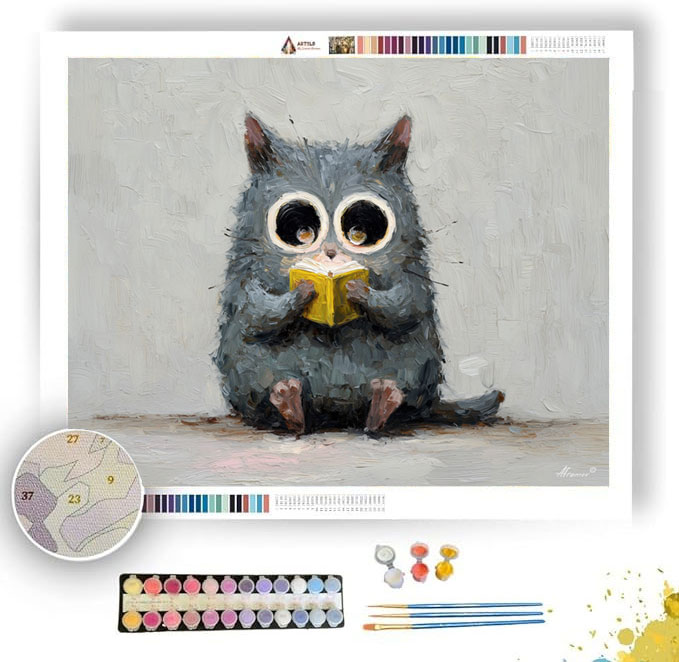 KAWAII CAT READING BOOK - Paint by Numbers Full Kit