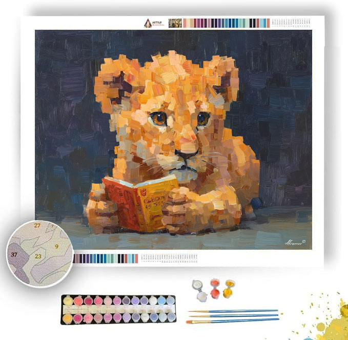 KAWAII LION STUDYING - Paint by Numbers Full Kit