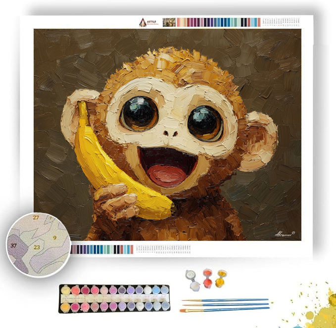 KAWAII MONKEY EATING A BANANA - Paint by Numbers Full Kit
