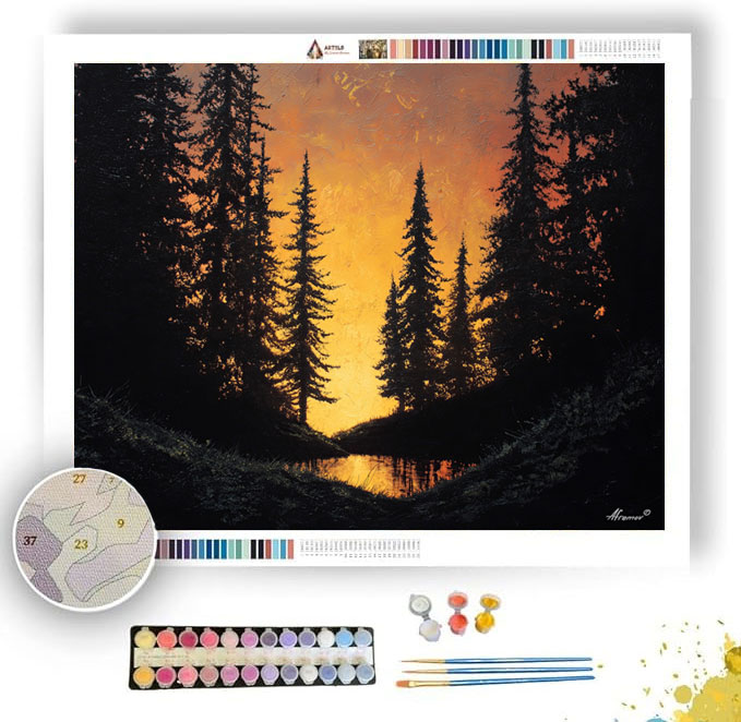 LIGHT BEYOND THE PINES - Paint by Numbers Full Kit