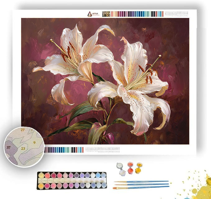 Whether pursued for personal artistic expression or given as a thoughtful gift, this kit invites individuals to bask in the radiant world of sunflowers, allowing them to infuse Afremov Gallery artist's creation with vivid colors and meticulous attention to detail, bringing the LILY GRACE to life in their own unique interpretation.