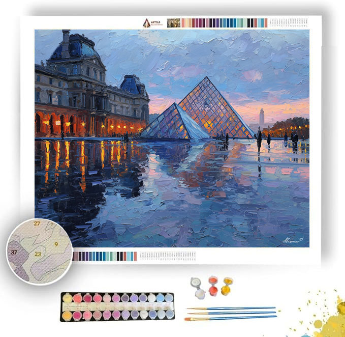 LOUVRE PYRAMID AFTER RAIN - Paint by Numbers Full Kit