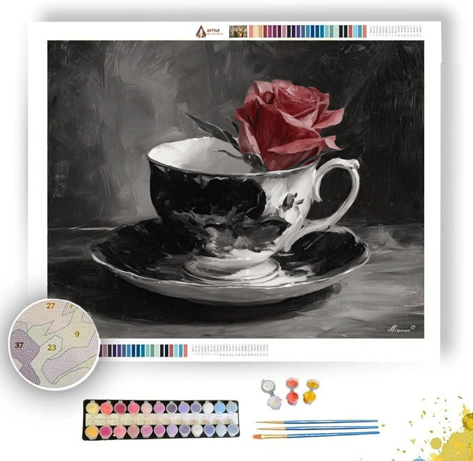 MONOCHROME TEACUP WITH ROSE B&W - Paint by Numbers Full Kit