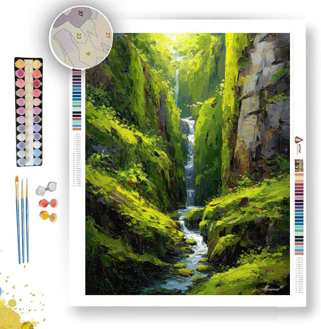 MOSSY CLIFF FALLS - Paint by Numbers Full Kit