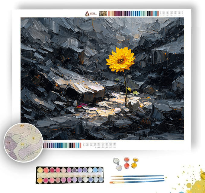 Whether pursued for personal artistic expression or given as a thoughtful gift, this kit invites individuals to bask in the radiant world of sunflowers, allowing them to infuse Afremov Gallery artist's creation with vivid colors and meticulous attention to detail, bringing the OCHRE OUTPOST to life in their own unique interpretation.