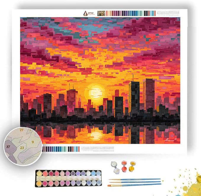 PIXEL SUNSET OVER CITY - Paint by Numbers Full Kit
