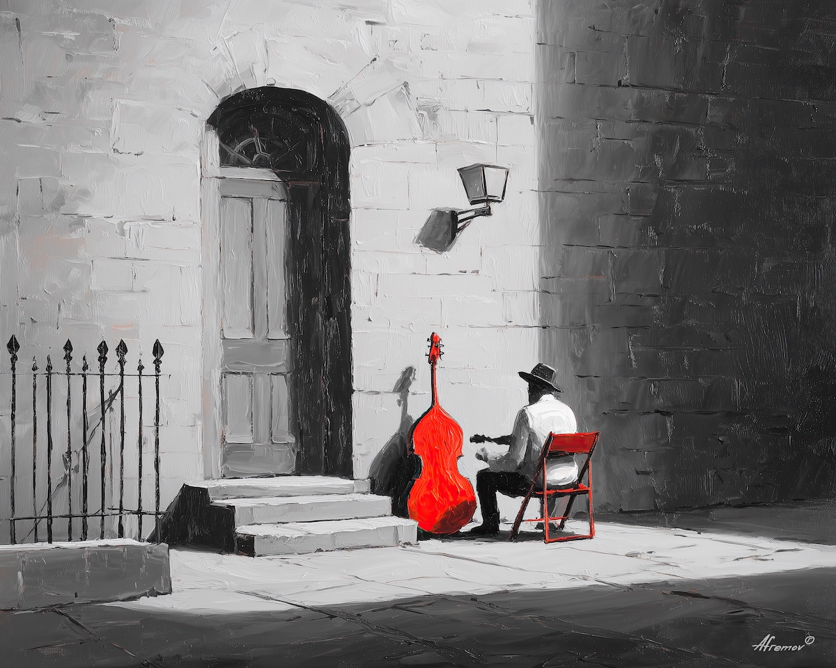RED NOTE MUSICIAN B&W - Paint by Numbers Full Kit
