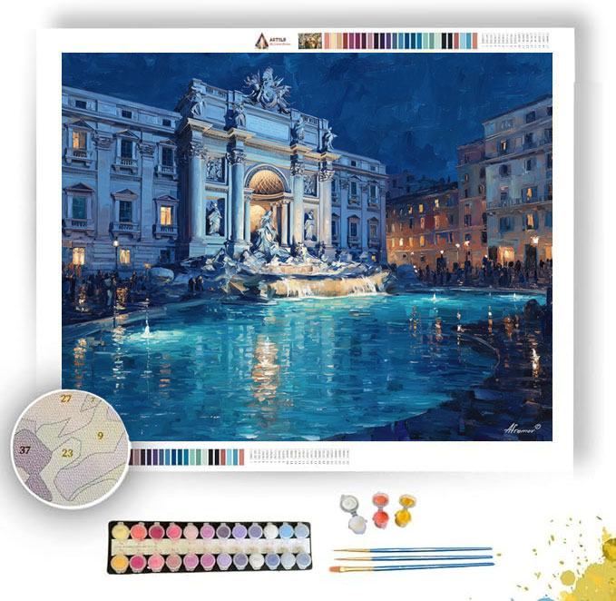 ROME TREVI FOUNTAIN MOONLIGHT - Paint by Numbers Full Kit