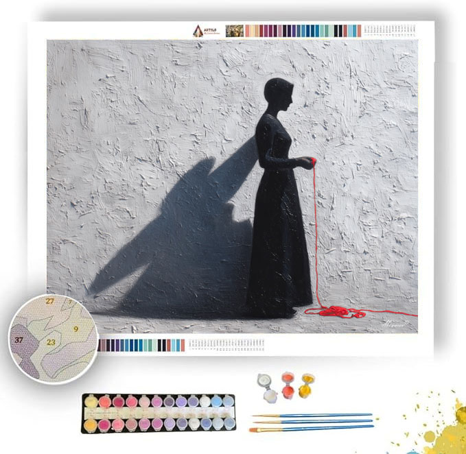 SHADOWED FIGURE WITH SCARLET THREAD B&W - Paint by Numbers Full Kit