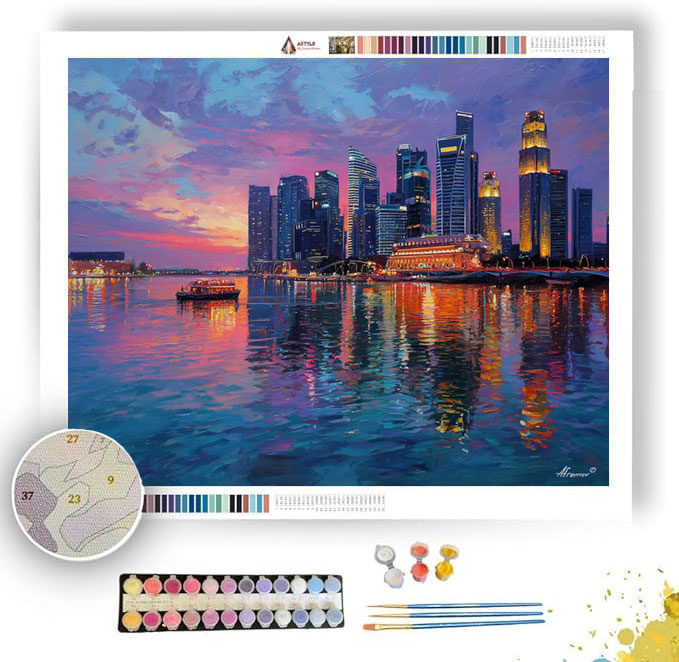 SINGAPORE MARINA TWILIGHT - Paint by Numbers Full Kit