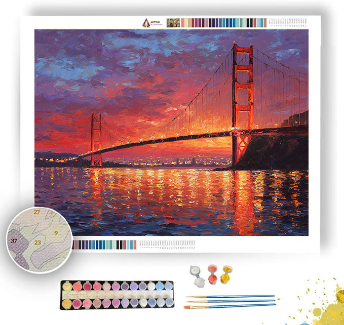 SUNSET OVER THE GOLDEN GATE - Paint by Numbers Full Kit