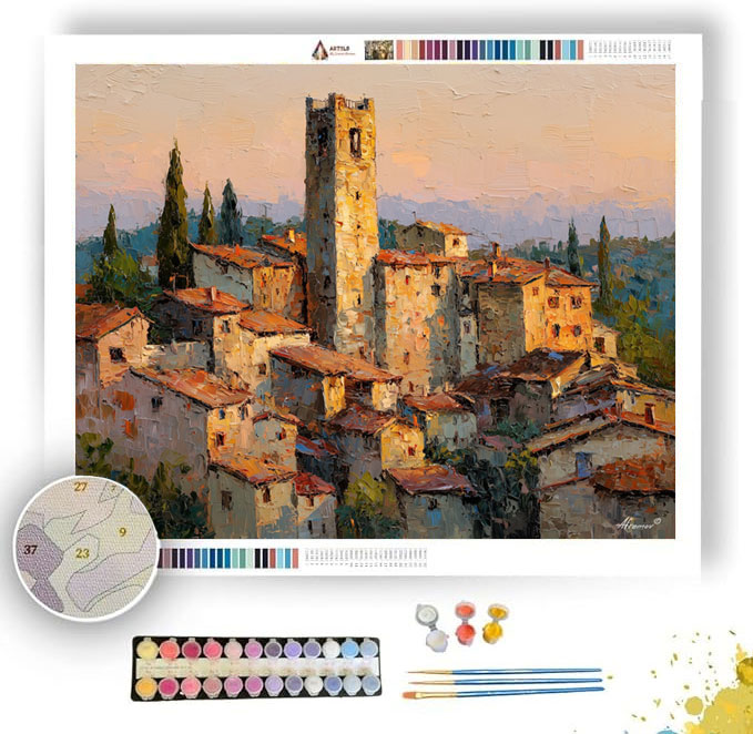 TOWER ABOVE THE VILLAGE - Paint by Numbers Full Kit