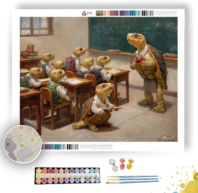 TURTLE STUDENTS IN CLASS - Paint by Numbers Full Kit