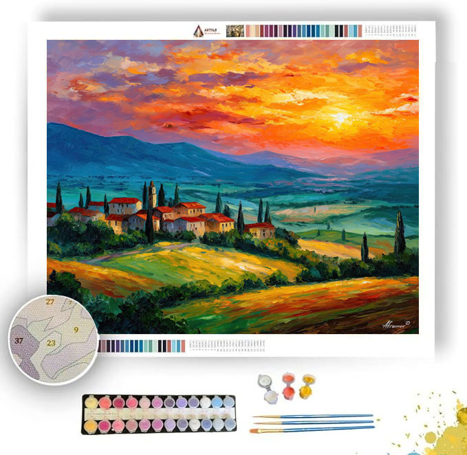 TUSCAN HILLS SUNSET - Paint by Numbers Full Kit