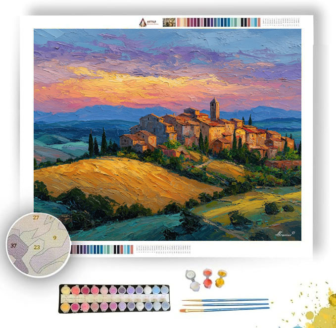 TUSCAN HILLTOP VILLAGE GOLD FIELDS - Paint by Numbers Full Kit