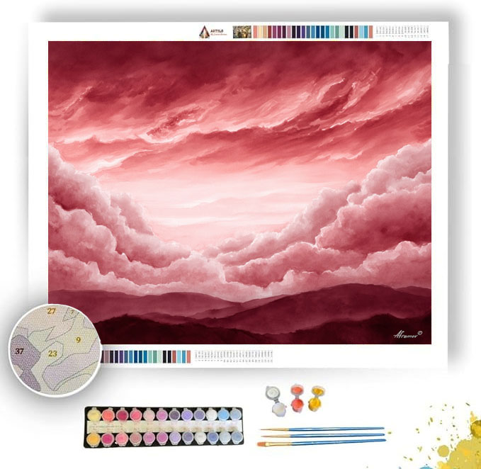 WATERCOLOR CRIMSON SKY VISTA - Paint by Numbers Full Kit