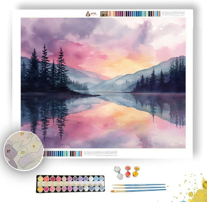 WATERCOLOR LAKE SERENITY - Paint by Numbers Full Kit