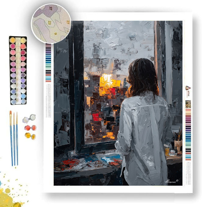 WOMAN AT WINDOW B&W - Paint by Numbers Full Kit