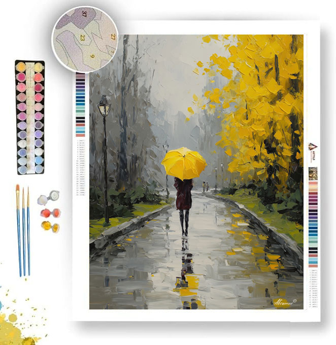 YELLOW UMBRELLA WALKER B&W - Paint by Numbers Full Kit