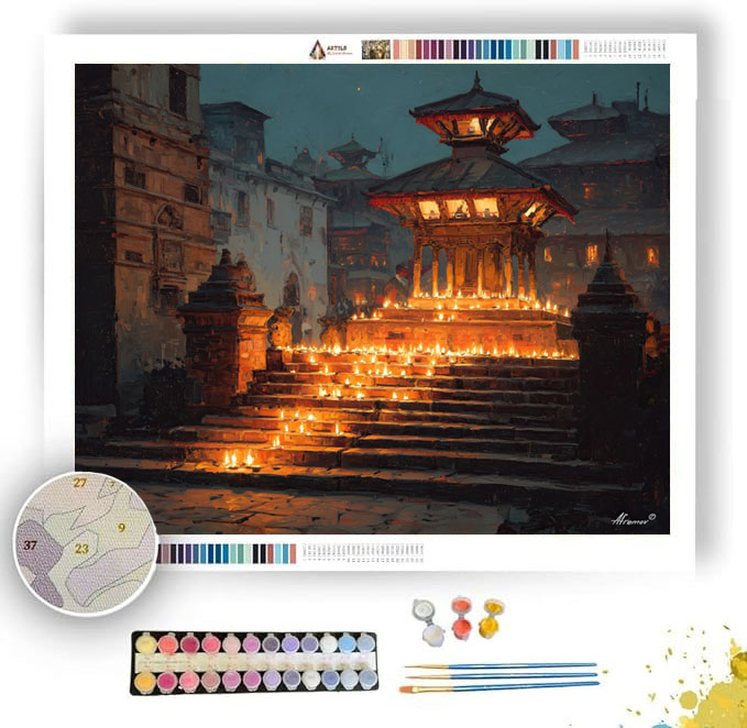 KATHMANDU TEMPLE NIGHT - Paint by Numbers Full Kit