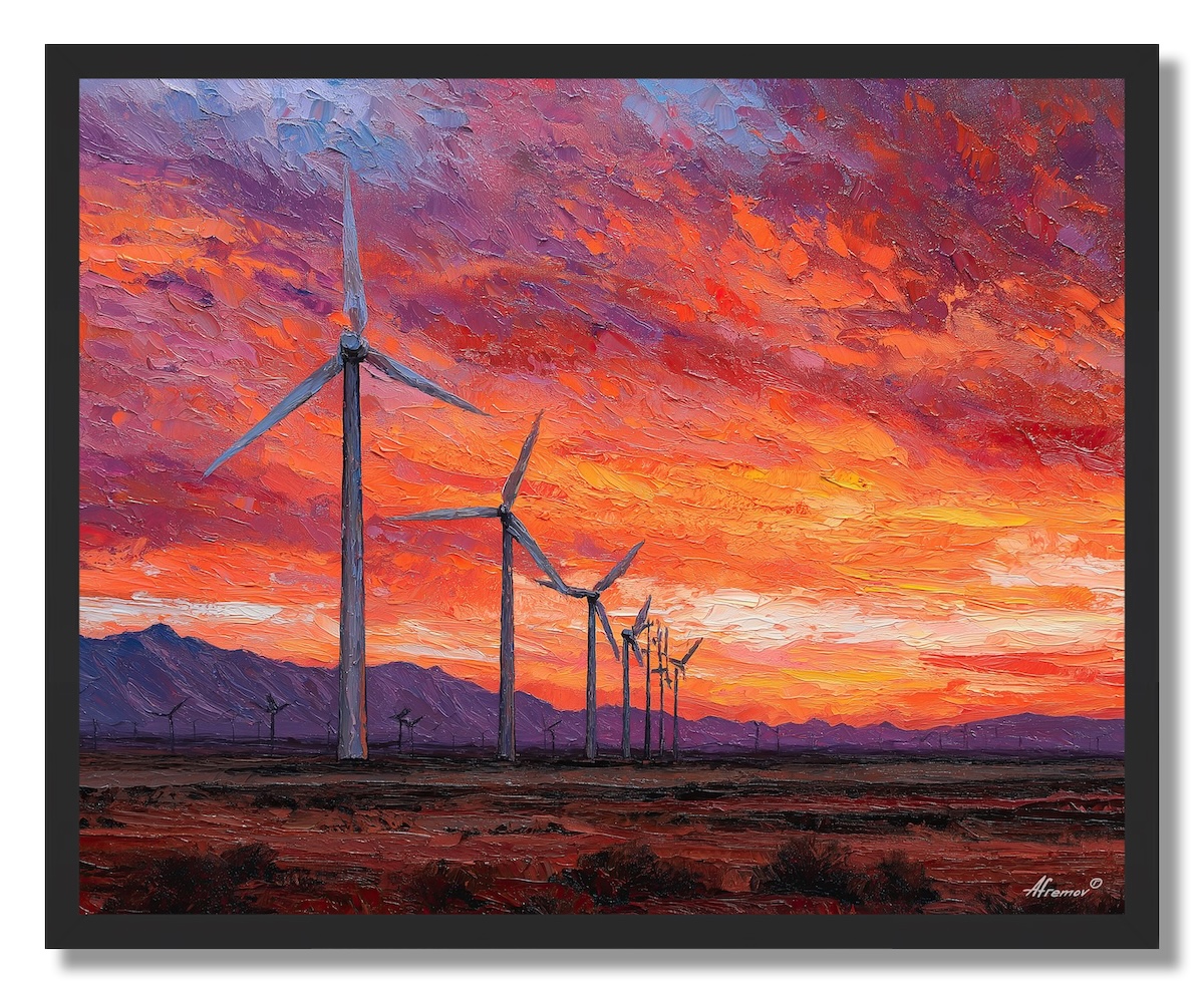 MOJAVE WINDMILL SUNSET FIELD - FRAMED