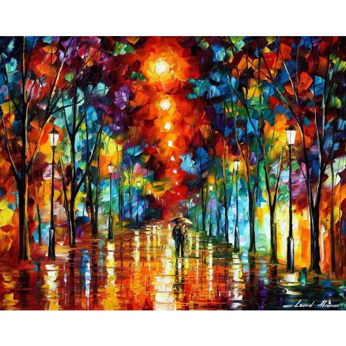 This is a one-of-a-kind original oil painting by Leonid Afremov. It is made with high-quality oil paint on top of 100% linen canvas. An original oil painting is a direct result of the artist's creative process. This is a unique piece. Leonid Afremov has spent weeks making this painting using nothing more than his imagination and inspiration. This piece holds the real artistic soul of Leonid Afremov. The certificate of authenticity will include the name of the owner who purchased the piece of art. The certificate is signed by Leonid Afremov