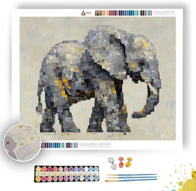 PIXEL ELEPHANT BLOCK - Paint by Numbers Full Kit