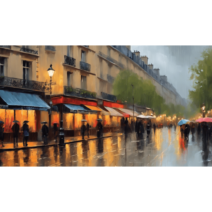 RAINY PARIS STREET SCENE - stretched and ready to hang giclee on canvas