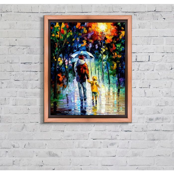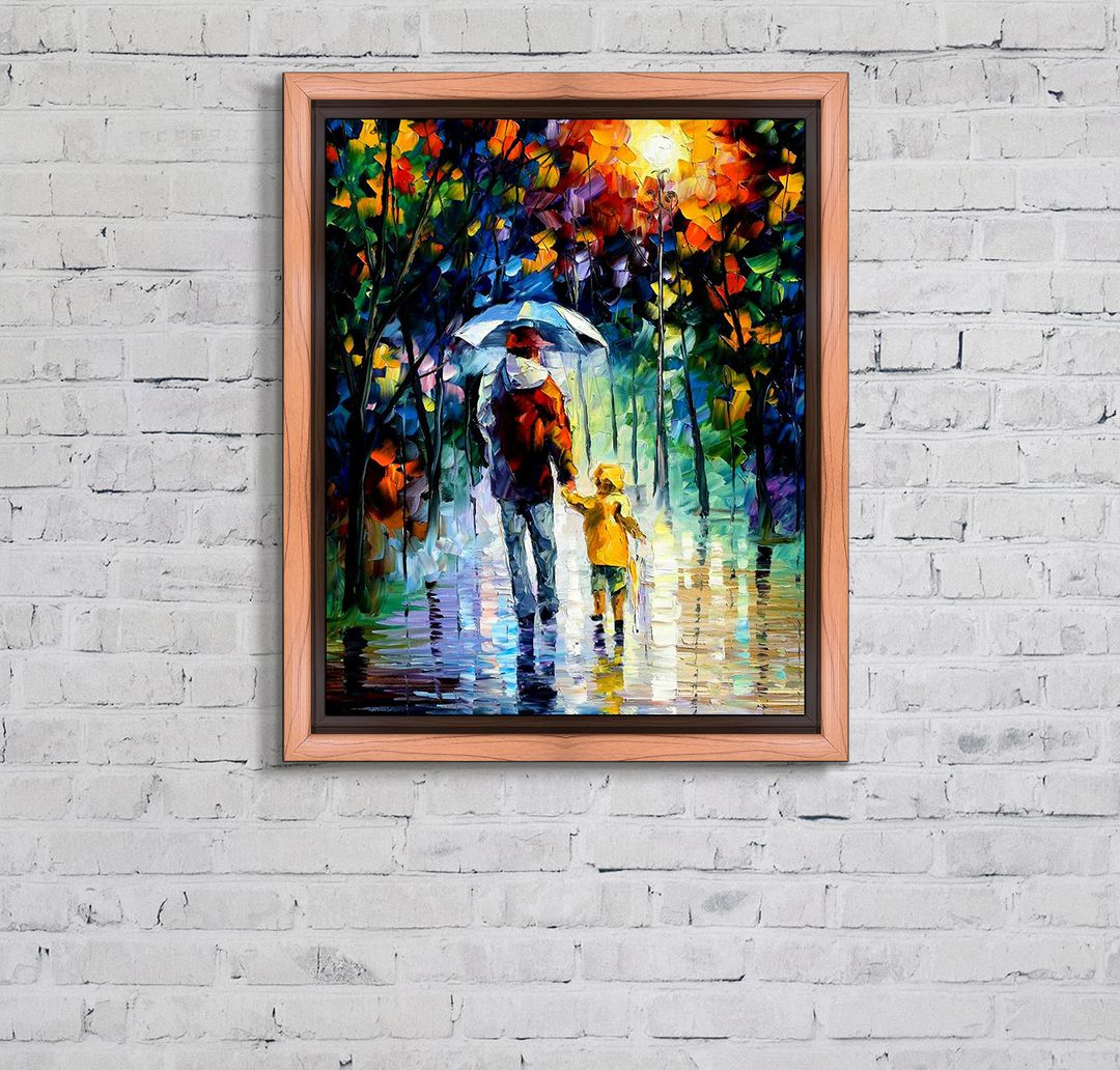 RAINY WALK WITH DADDY - PALETTE KNIFE Oil Painting On Canvas By Leonid Afremov